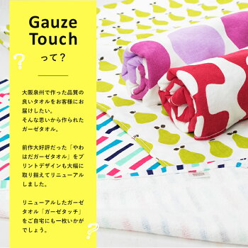 サイズ 約34cm×85cm 素材 綿100% 重さ 約70g 原産国 日本(泉州) たくさんのご注文ありがとうございます! 累計販売枚数 35万枚突破! (※バス・フェイス・ハンドタオル全店舗合計) 商品説明 タオルの産地泉州で生産された、安心の日本製ガーゼタオルです。